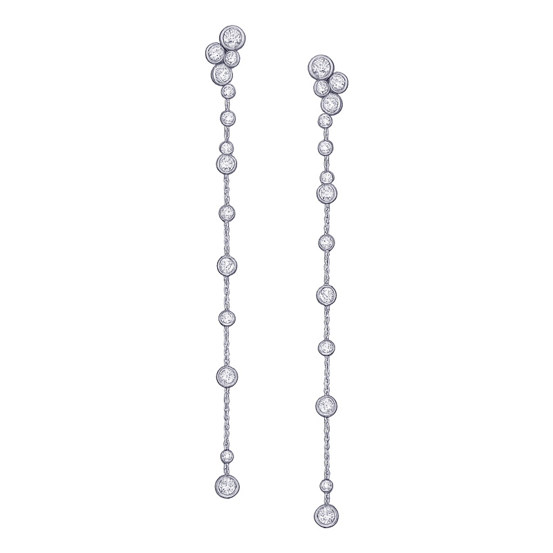 The upper cluster adds a modern touch, while the dangling diamond chain delivers effortless elegance and graceful movement. Lightweight yet striking, these earrings transition seamlessly from day to night, making them a timeless addition to any jewelry collection.