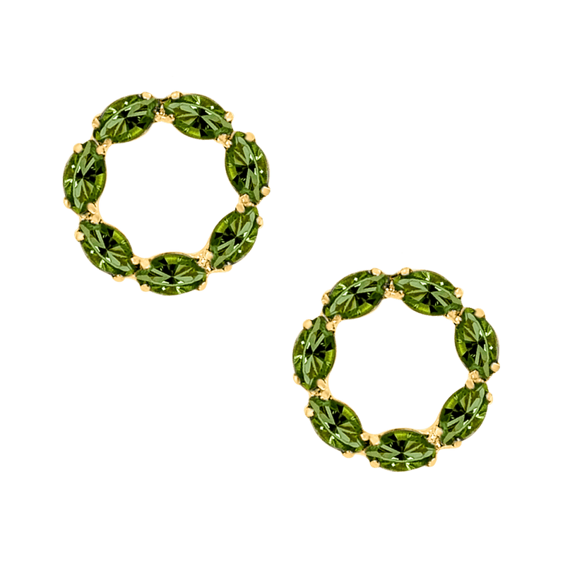 Inspired by the warm glow of twilight, the Sunset Peridot Earrings capture the joyful spark of a golden sunset. Each earring features a vibrant peridot — a gemstone cherished for its uplifting energy, renewal, and positivity.