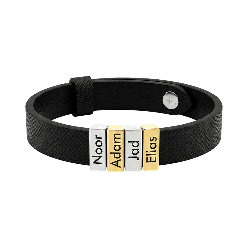 This bracelet features engraved names on narrow silver plates that slide over a genuine leather strap, offering a personalized touch that celebrates the bond between father and child. Crafted with Sterling Silver and available in an Gold 18K option, this bracelet is the perfect gift for Dad on Father's Day, Christmas, or any special occasion.