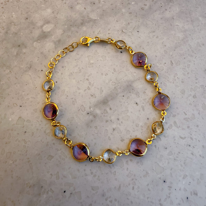 Dive into elegance with the Milano Grande Rosa Bracelet — a refined blend of big and small Swarovski gemstones inspired by Rose Quartz. Featuring radiant rose and diamond-colored stones, this piece channels the warmth and romance of summer.