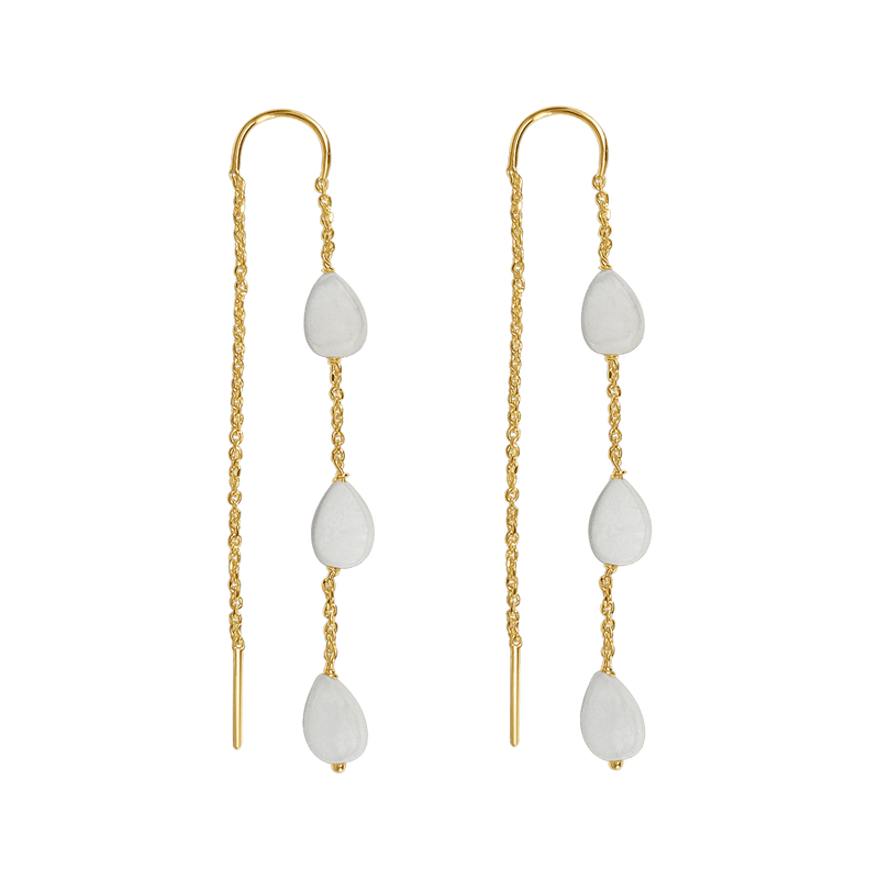 Each earring features cascading mother-of-pearl shell drops, delicately suspended from a fine chain that moves gracefully with every step.