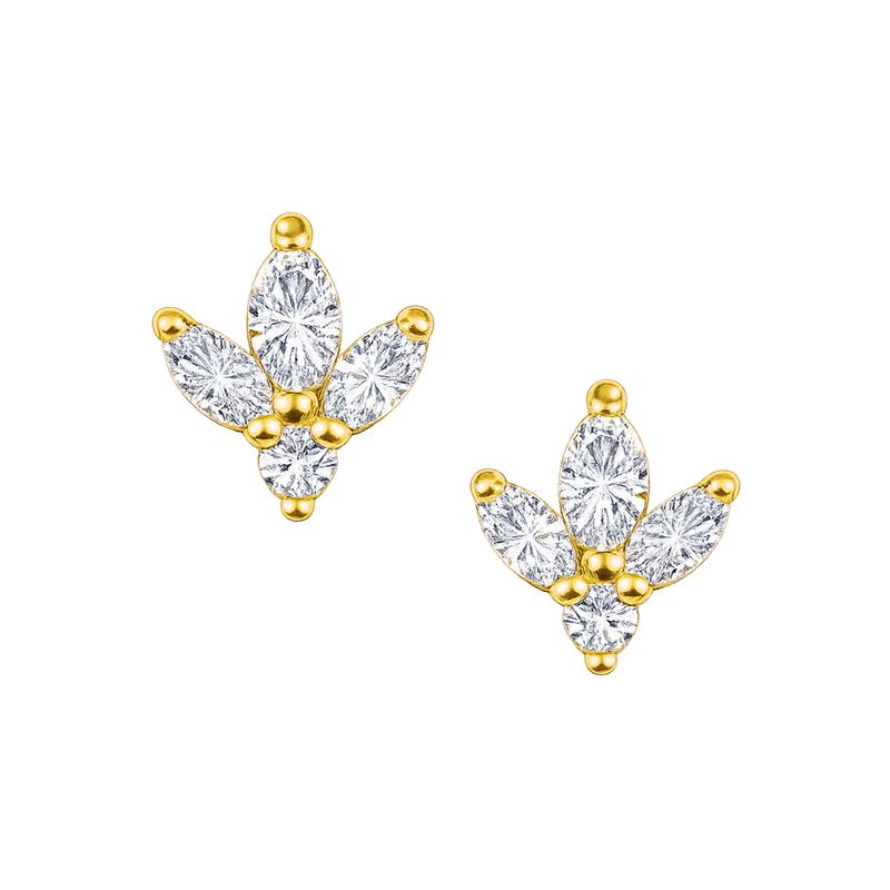 Featuring a delicate floral cluster of marquise-cut Zirconium Diamonds, these studs radiate brilliance from every angle — perfect for adding a touch of elegance to both everyday and special occasion looks.