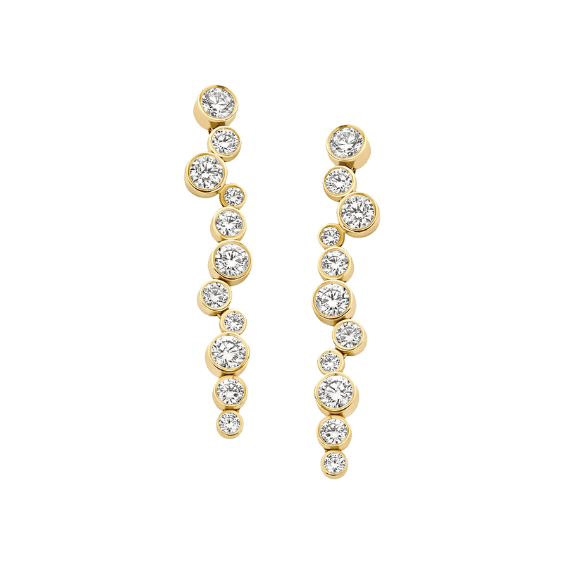 Elegant with a modern edge, the Hive Diamond Drop Earrings are designed to captivate with movement and light. Featuring a vertical cascade of bezel-set stones in varying sizes, these earrings create a refined rhythm reminiscent of a honeycomb flow—balanced, structured, and beautifully radiant.