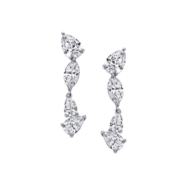 Graceful, luminous, and designed to move with you, the Multi Diamond Drop Earrings are a timeless expression of elegance. Featuring a cascading sequence of pear- and marquise-cut stones, these earrings create a fluid silhouette that catches the light from every angle.