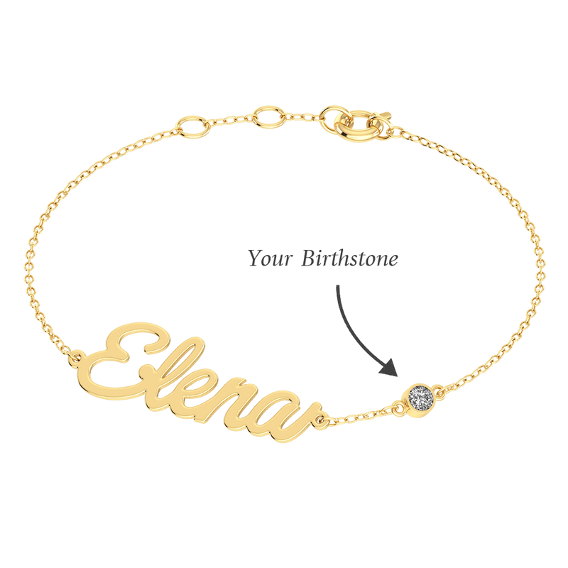 Discover understated luxury with our Custom Name Bracelet, available in your choice of Sterling Silver or Gold 18K. The name is styled in graceful script and accented with delicate dots for a refined finish.