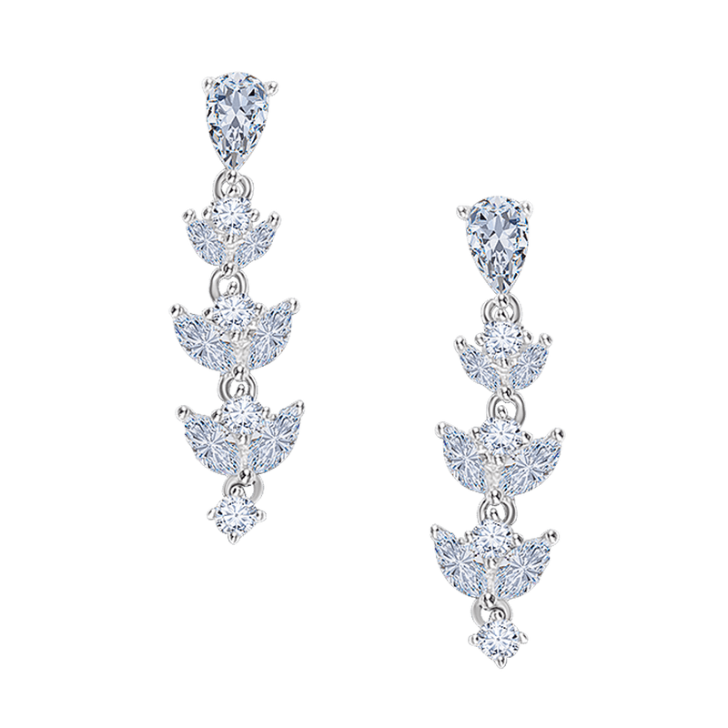 Elegant and timeless — the Roma Diamond Drop Earrings cascade with brilliance, featuring a refined arrangement of pear and marquise-cut stones that catch the light with every move.