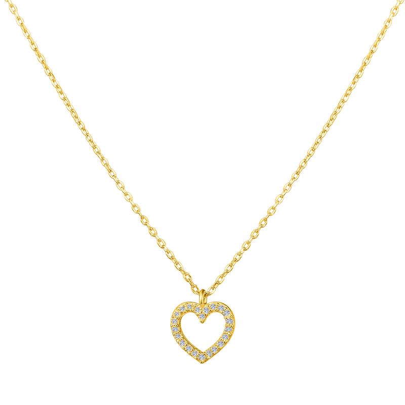 Its open-heart pendant, beautifully adorned with sparkling zirconium stones, reflects light from every angle, symbolizing purity and affection.