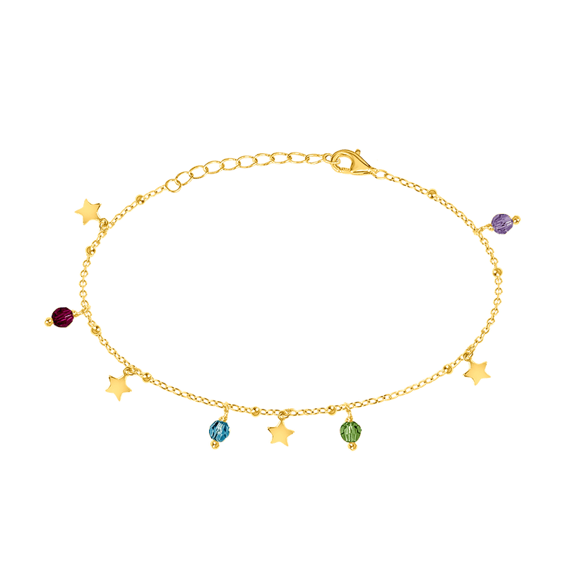 Each delicate chain is adorned with mini star charms and faceted colorful crystals, adding a hint of sparkle and movement to your wrist.
