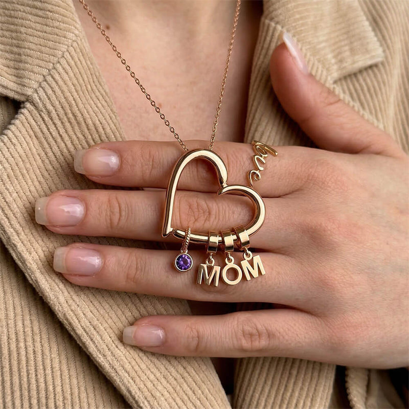 Celebrate the love of motherhood with the Love Heart MOM Necklace. Crafted from high-quality Silver 925, this meaningful piece features a delicate heart-shaped pendant with the initials MOM elegantly hanging alongside a sparkling birthstone charm.