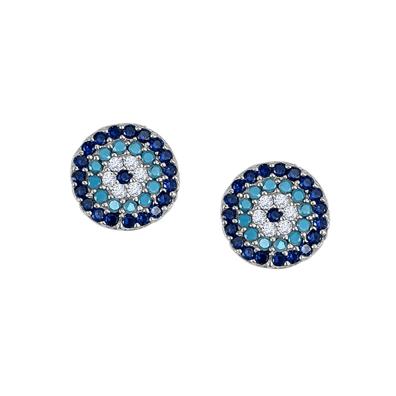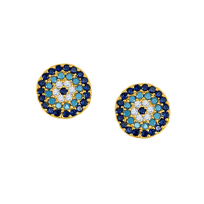 Featuring a radiant circular design adorned with deep blue and brilliant white Zirconium stones, these earrings bring both protective charm and refined sparkle to any look. Their classic silhouette makes them ideal for everyday wear or as a sophisticated accent for evening styles.