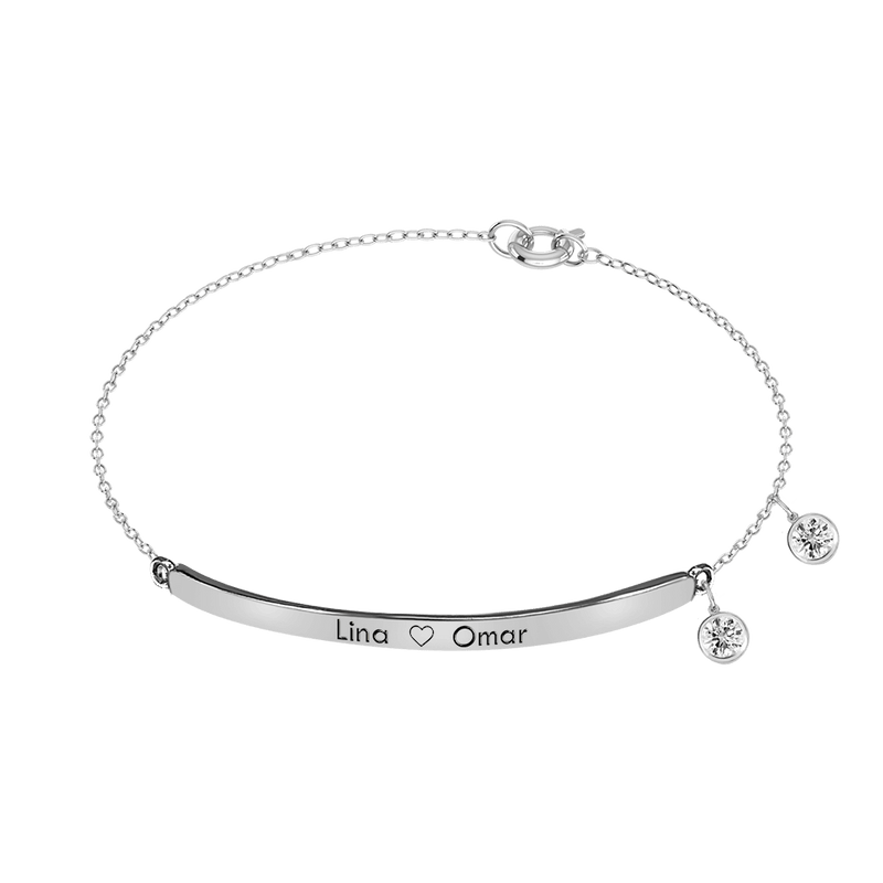 Finished with two bezel-set zircon stones that gently dangle for a touch of sparkle, this bracelet blends everyday simplicity with timeless sophistication.