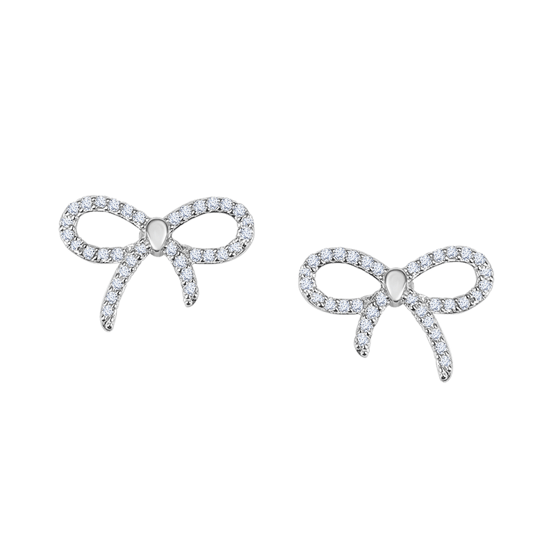 Shaped like a delicate bow and fully adorned with pavé-set stones, these studs capture a timeless charm with a modern twist. Their intricate silhouette reflects light beautifully, adding a hint of playful elegance whether worn daily or for special occasions.