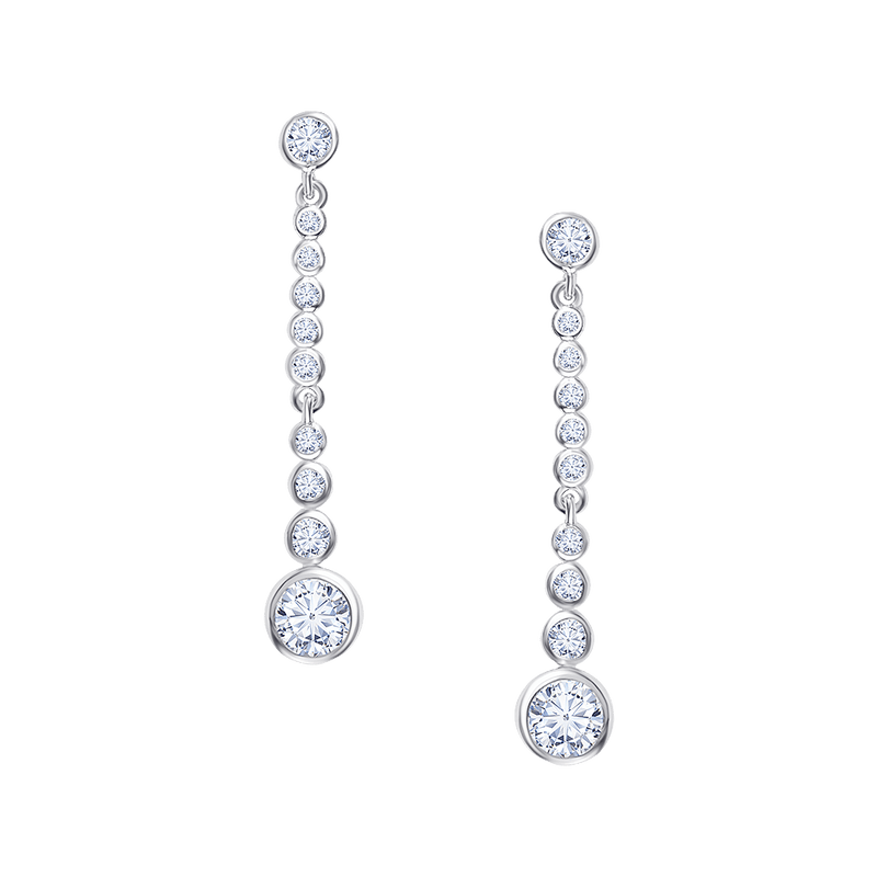 An endless cascade of brilliance, these earrings are designed to capture light with every movement. Each diamond is bezel-set in a delicate linear arrangement, creating a fluid, graceful silhouette that radiates timeless sophistication.