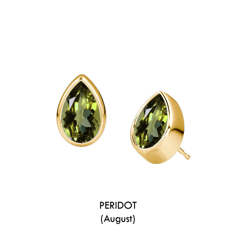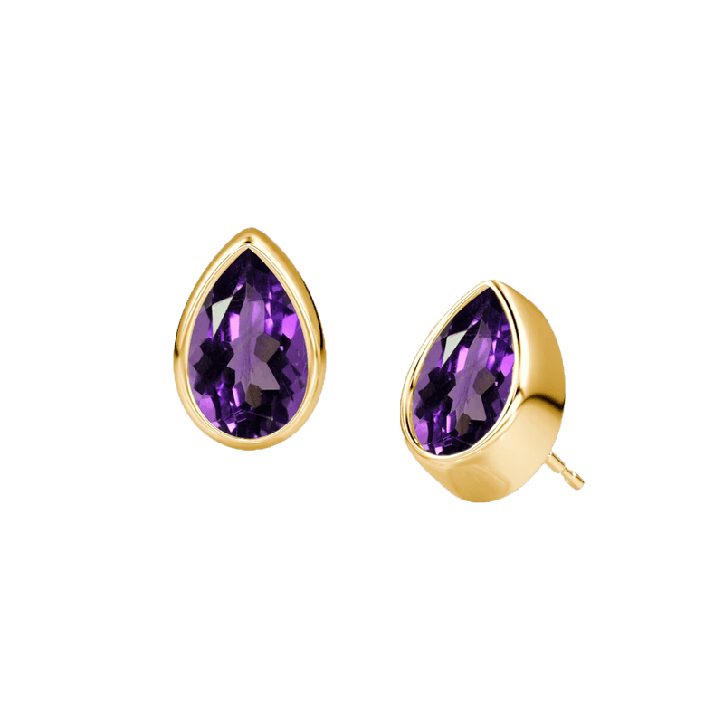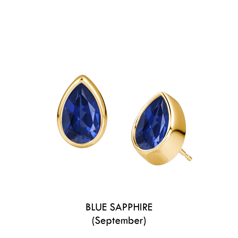 Radiating refined elegance, these pear-shaped birthstone studs bring a touch of personal color to timeless design. Each gemstone is beautifully bezel-set, creating a smooth, modern frame that enhances its natural brilliance while offering a clean, sophisticated look.